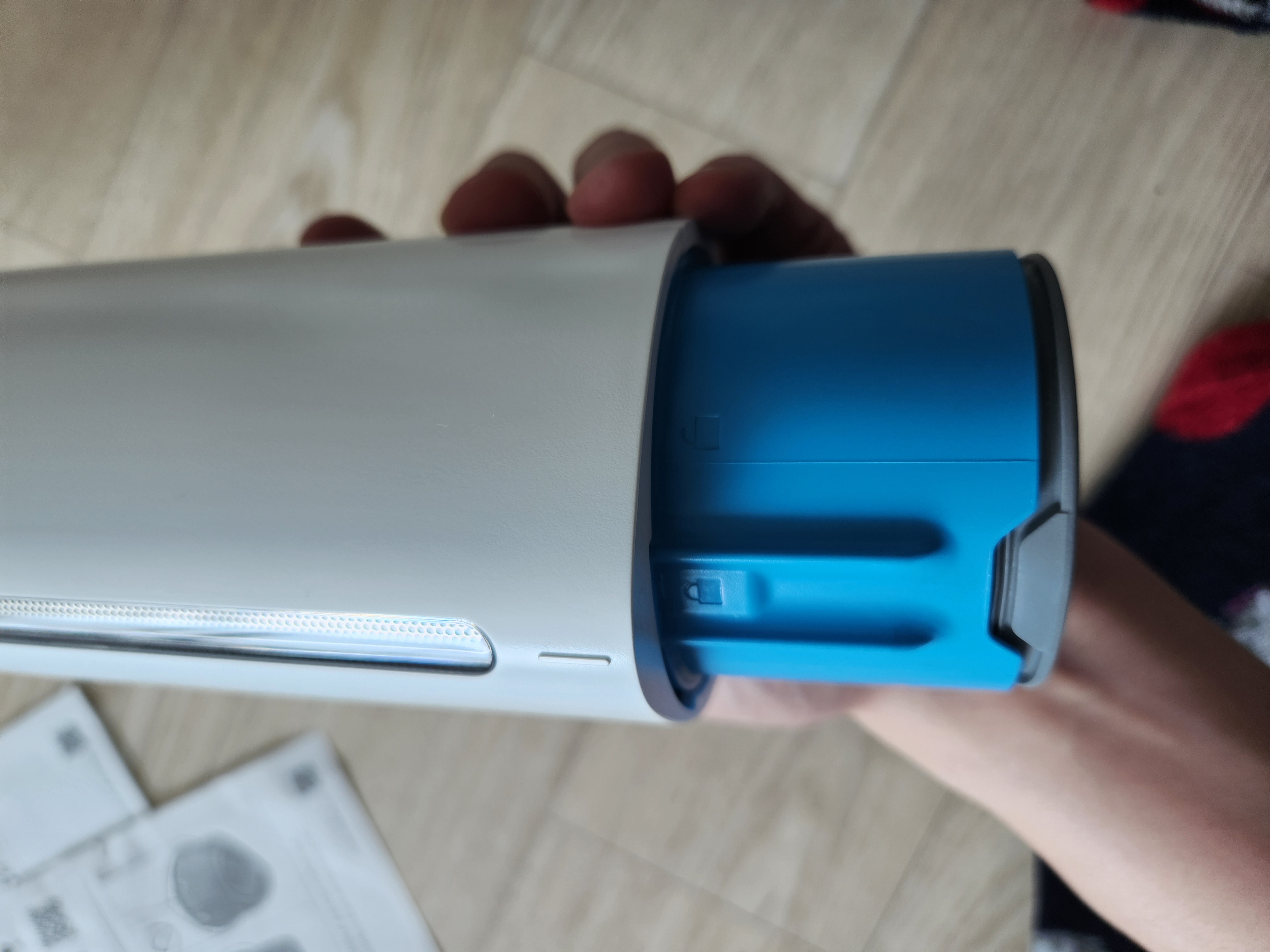 잠금이 제대로 안하면 PUSH버튼을 누르지 않아도 손잡이를 밀면 먼지통이 나오더라구요. (먼지통 결합후 돌려서 잠금 부분이 몸체의 중앙으로 오는것 확인!!)