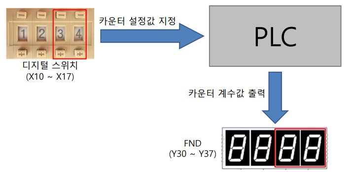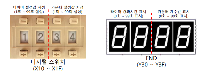 - 설정값이 0을 초과할 때 X1을 ON/OFF하면 계수가 되면서 값을 FND에 표시할 수 있다.