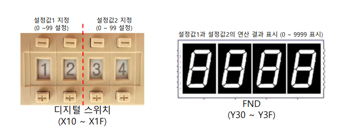 - X0을 누르면 설정값1과 설정값2를 더한 값을 FND에 표시