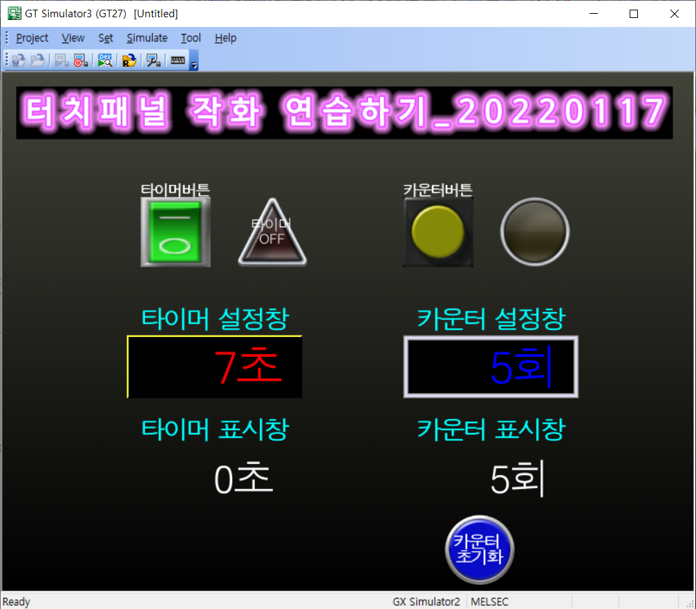 ※ 작화프로그램에서 시뮬레이터 수행 전에 래더프로그램(GX WORKS2)에서 시뮬레이터를 먼저 수행해야함.