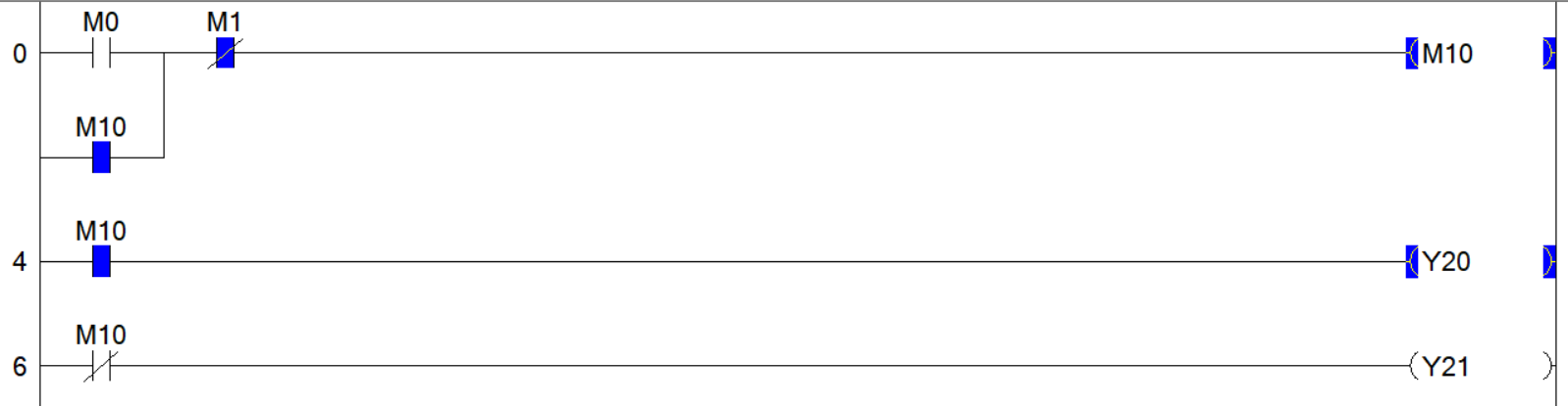 (2) 입력 및 출력 신호를 물리적인 버튼이 아닌 터치패널로만 버튼을 조작한다면 X0, X1, Y20, Y21등 입출력 전용 주소를 안쓰고 내부메모리(M), 데이터 레지스터(D) 로만 입출력을 구성해도 된다.