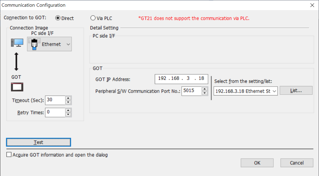 - 초기화면에서 상단 메뉴창 Communication → Communication Configuration → 이더넷 선택