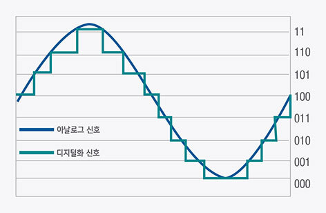 즉 분해능이 커지면 계단(Step)이 좀 더 촘촘해지며 아날로그 신호를 디지털 신호로 좀더 세밀하게 바꿀 수 있다.