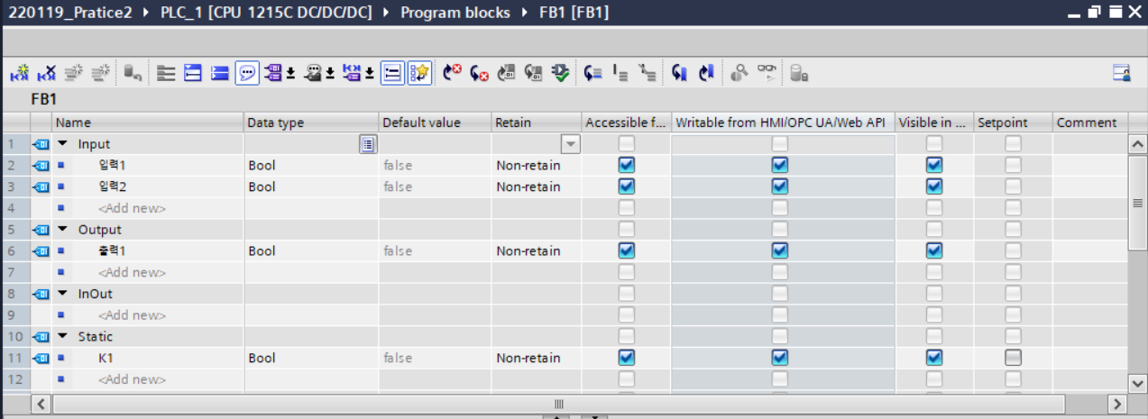 - FB내의 블록 설정값에 상수값 대신 입력 변수 설정