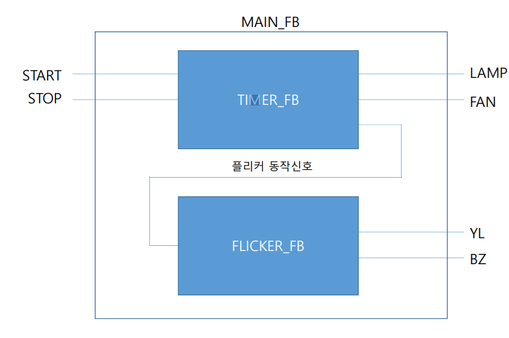 - TIMER_FB와 FLICKER_FB를 결합하는 FB입니다.