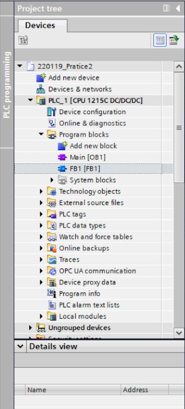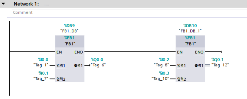 - FB내의 래더프로그램을 만들고 메인함수에서 좌측 메뉴창에 있는 FB를 드래그&드롭을 하면 호출됩니다.