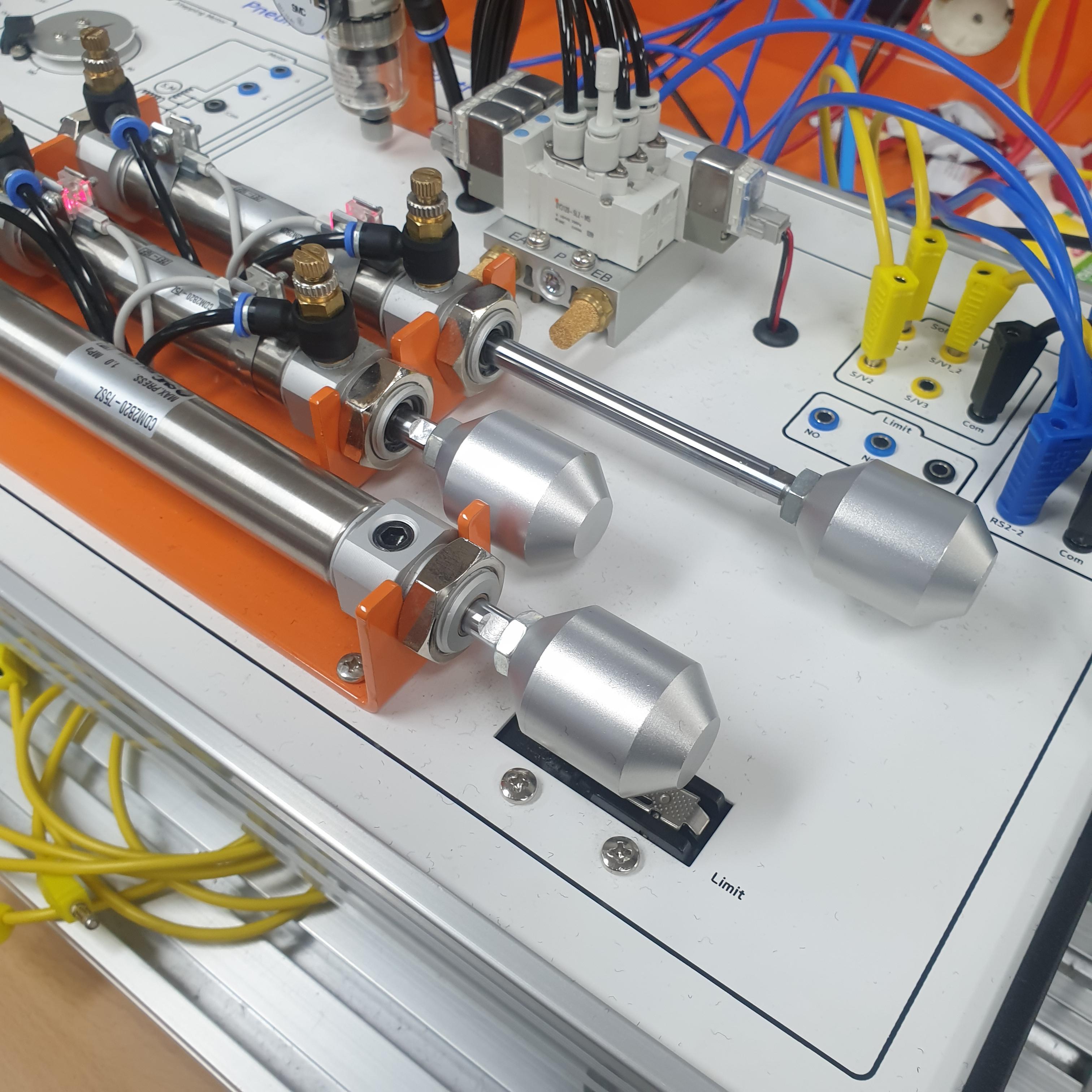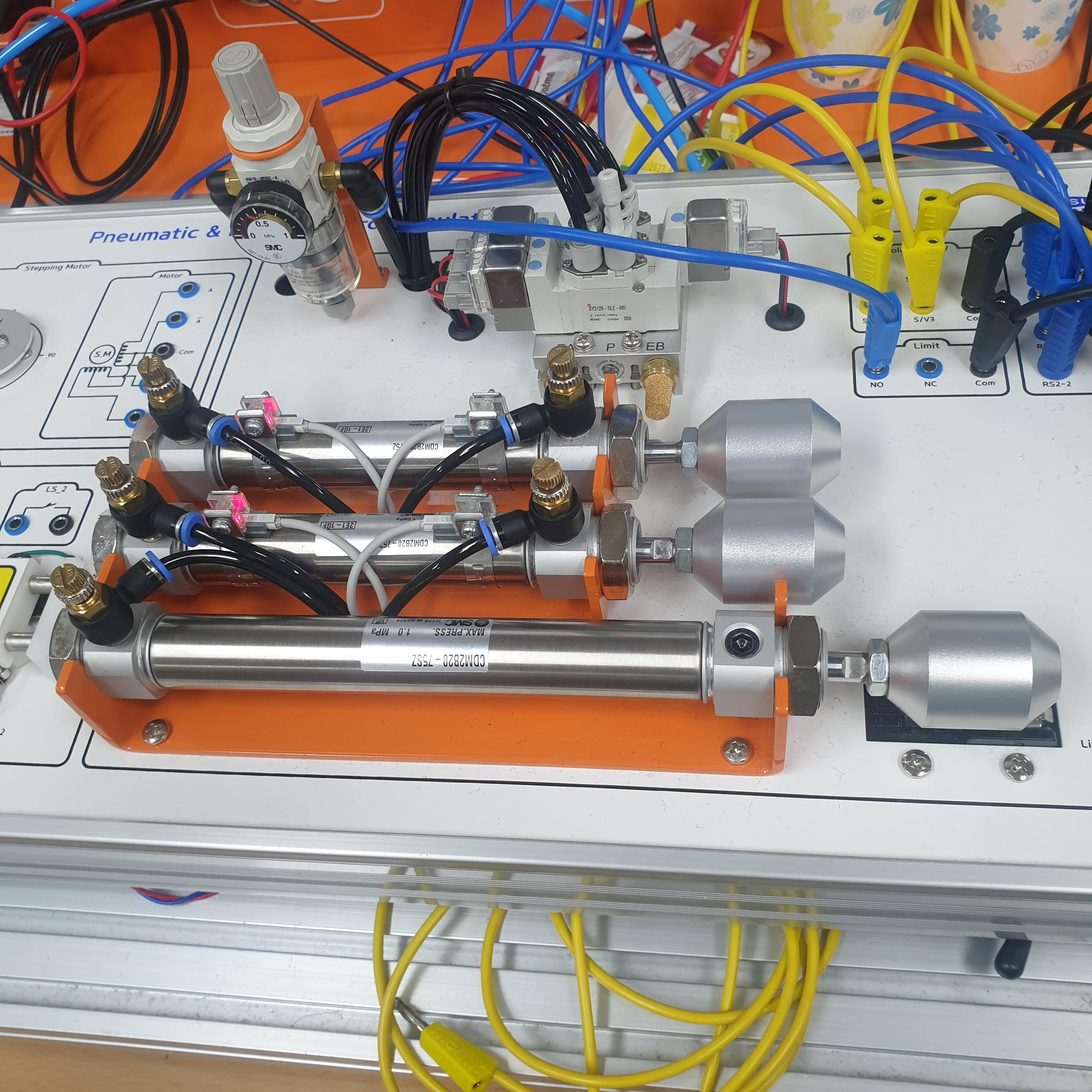 - 시퀀스 제어를 위해서는 액추에이터(Actuator)가 2개 이상 필요. 본 실습에서는 실린더를 2~3개(A, B, C)를 사용해서 진행