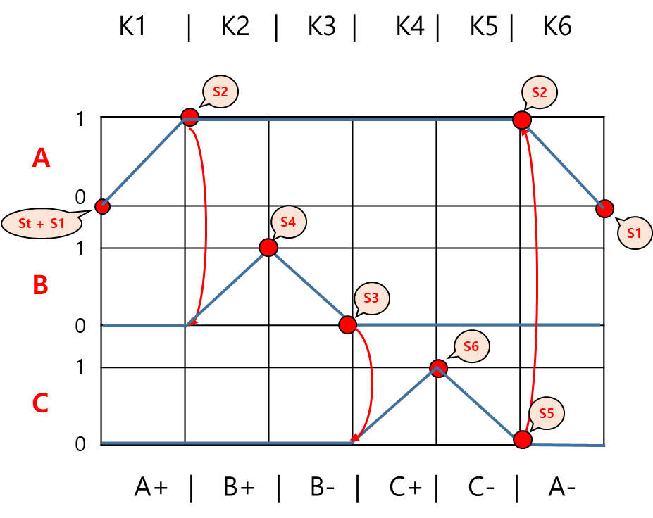 2-2. 스텝퍼 방식 설계 응용 예제 - 2 : 양솔(A), 편솔(B), 편솔(C) / A+ B+ B- C+ C- A-