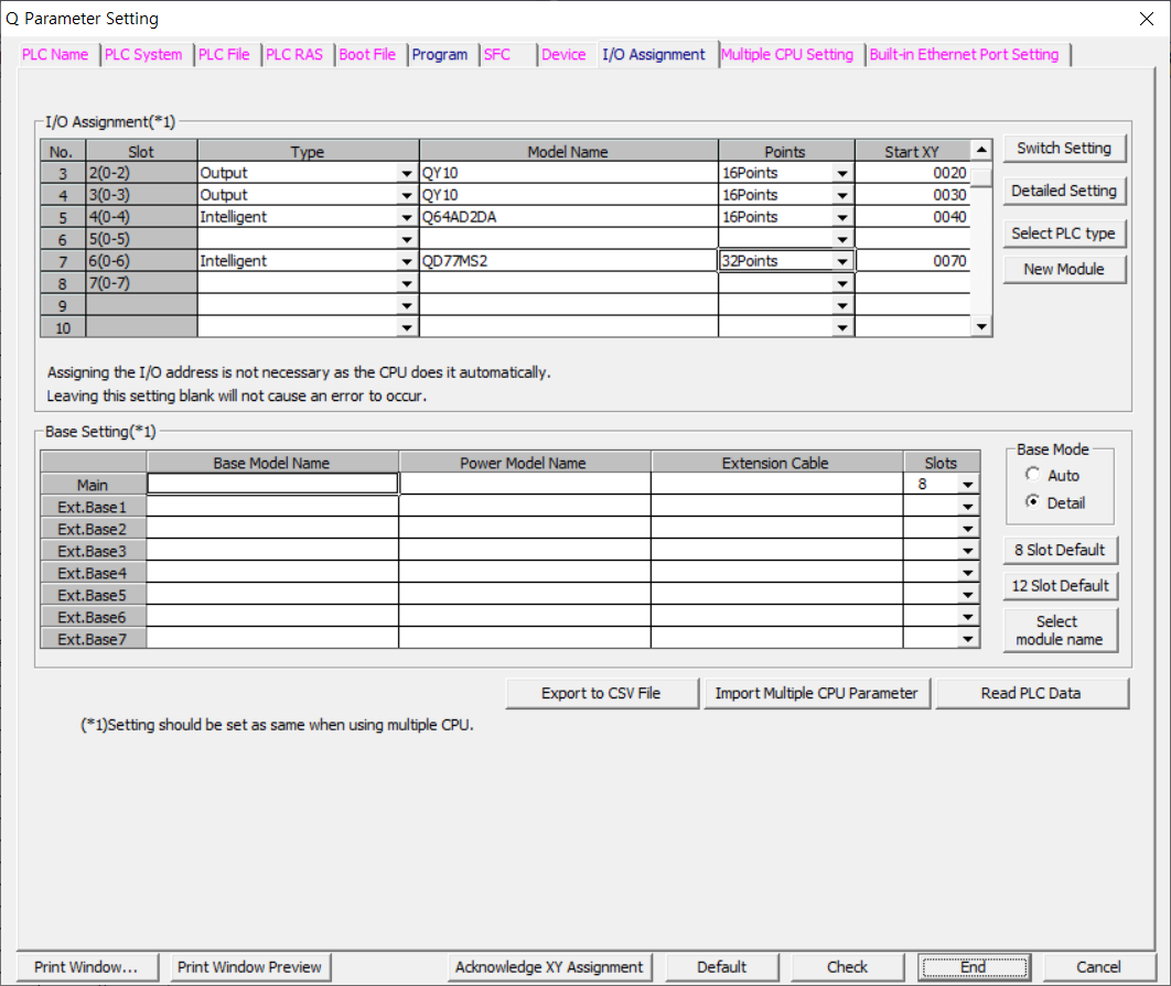 - QD77MS2가 꽂혀있는 Slot에 'Intelligent' Type의 'QD77MS2' Model Name을 등록하고 32Point 입력