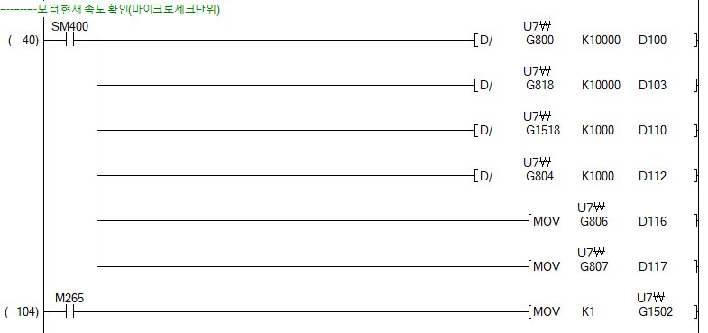 - MOV U7\G800 U7\G2006 : 현재 위치의 어드레스값(G800) / 위치결정 어드레스(G2006)