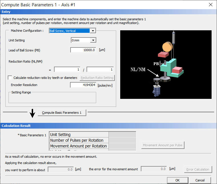 - Lead of Ball Screw : 나사 간격 길이 설정 (10,000 입력)