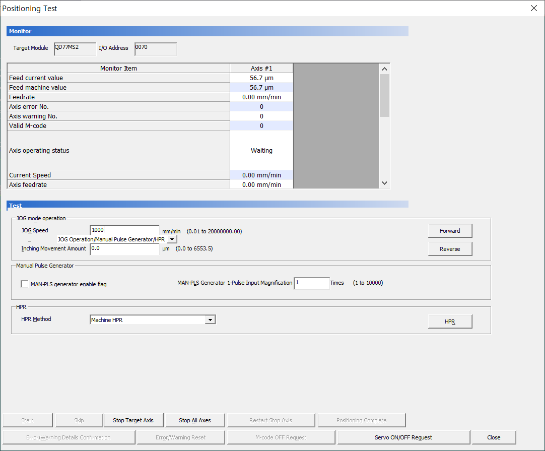 (1) 'Test of simple Motion Module' 클릭 후 아래와 같은 창에서 Test 수행